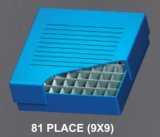 PB0242 BOX CRYOCHILL BLUE 81 PLACES FOR 1.0-2.0mL INTERNALLY/EXTERNALLY THREADED VIALS WITH TRANSPARENT COVER 133mmx133mmx52mm POLYCARBONATE ***PRICED TO SELL*** (524010-B)