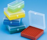 PB0157 BOX CRYOCHILL FREEZER (-90C) 81 PLACE, HOLDS 1.0/1.8 CRYO VIAL or 1.5/2.0 MICRO TUBE WITH HINGED LID, ASSORTED COLOURS (BLUE YELLOW ORANGE PURPLE GREEN) POLYPROPYLENE AUTOCLAVABLE (212060-A)
