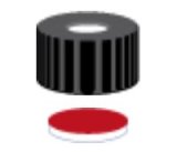 VC0269 CAP SCREW BLACK, N9 CENTRE HOLE WITH SILICONE WHITE/PTFE RED SEPTA TO FIT 2mL VIAL (702036)
