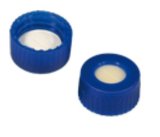 VC0283 CAP SCREW BLUE, N9 CENTRE HOLE WITH BONDED SILICONE BEIGE/PTFE WHITE, SLIT SEPTA TO FIT 2mL VIAL (702027)