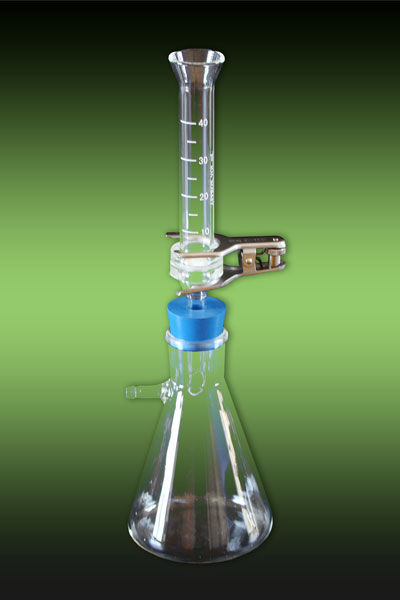 FF0474 FILTER HOLDER 25mm, INCLUDES 40mL CYLINDER STYLE FUNNEL, FRITTED GLASS BASE, GLASS SOLVENT COLLECTION FLASK WITH SIDE ARM, STAINLESS STEEL CLAMP AND No.11 STOPPER (FB-C-4)
