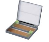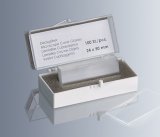 PM4056 MICROSCOPE SLIDE BOX 100 PLACE FITS 75/76x25/26mm SLIDES GREY WITH STEEL LOCK AND MOUNTED INDEX CARD ABS PLASTIC (0500-4100-07)