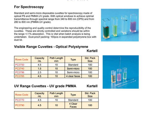 PC3740 CUVETTE DISPOSABLE SEMI MICRO LOW FORM 1.5mL 10mm VISIBLE (1938)