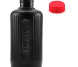 PB2930 BOTTLE 250mL ROUND POISON BLACK HDPE WITH RED POLYPROPYLENE 28mm 410 WADDED SCREW CAP (A93/2898)