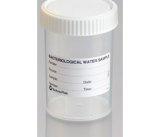 PV1654 SAMPLE JAR WITH WHITE SCREW CAP 250mL, LABELLED, PE GAMMA STERILE SODIUM THIOSULFATE TREATED (P10065-06)